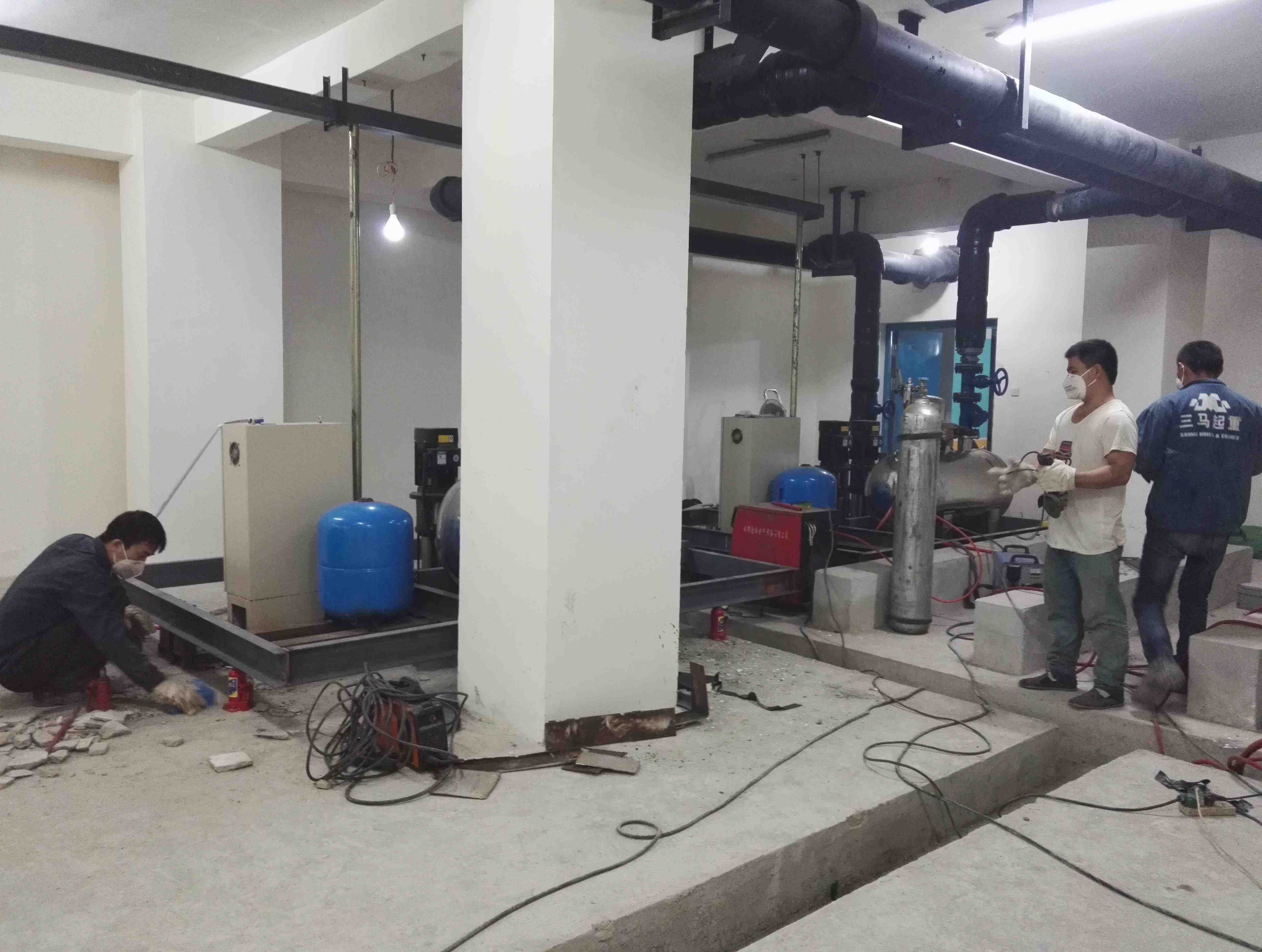 成都金欣苑小區(qū)水泵房總共有三套水泵機(jī)組,位于地下室負(fù)二樓(地下室共負(fù)三樓,均不同程度出現(xiàn)低頻噪聲,機(jī)組運(yùn)行時(shí)產(chǎn)生的低頻振動(dòng)噪聲和供水管道的低頻振動(dòng)噪聲順著四周墻壁、柱頭向樓上傳遞,干擾業(yè)主的正常休息,受該公司邀請(qǐng),我們成都鼎三豐環(huán)保工程有限公司聲學(xué)工程師與甲方工程師對(duì)現(xiàn)場(chǎng)進(jìn)行了實(shí)際勘察,在地下室機(jī)房里感覺(jué)噪聲并不特別大,但地面、墻體發(fā)麻,基礎(chǔ)振動(dòng)明顯,業(yè)主反映上午午?7:00~8:00,夜間?22點(diǎn)-24?點(diǎn)噪聲明顯,一直影響到3樓住戶。